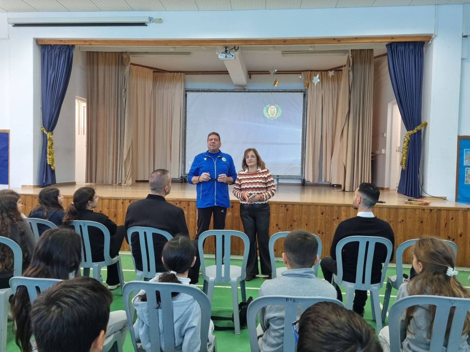 Στα πλαίσια της 10ης Ευρωπαϊκής Ημέρας Σχολικού Αθλητισμού στην Κύπρο προσκαλέσαμε τον κ. Γιάννη Ποντικό, ο οποίος ήρθε στο σχολείο μας και προπόνησε τα παιδιά των Ε και Στ τάξεων του σχολείου μας. Τα παιδιά ασκήθηκαν και ταυτόχρονα διασκέδασαν!