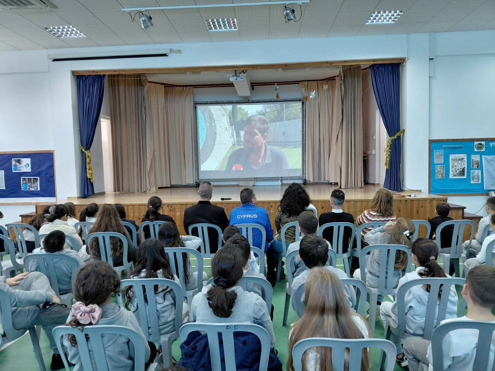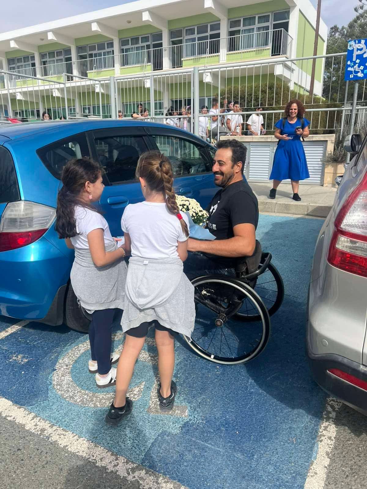 Σήμερα είχαμε τη χαρά να φιλοξενήσουμε στο σχολείο μας τον κ. Χάρη Θεοχάρους, ο οποίος μετά από ένα αυτοκινητιστικό ατύχημα έμεινε παραπληγικός.