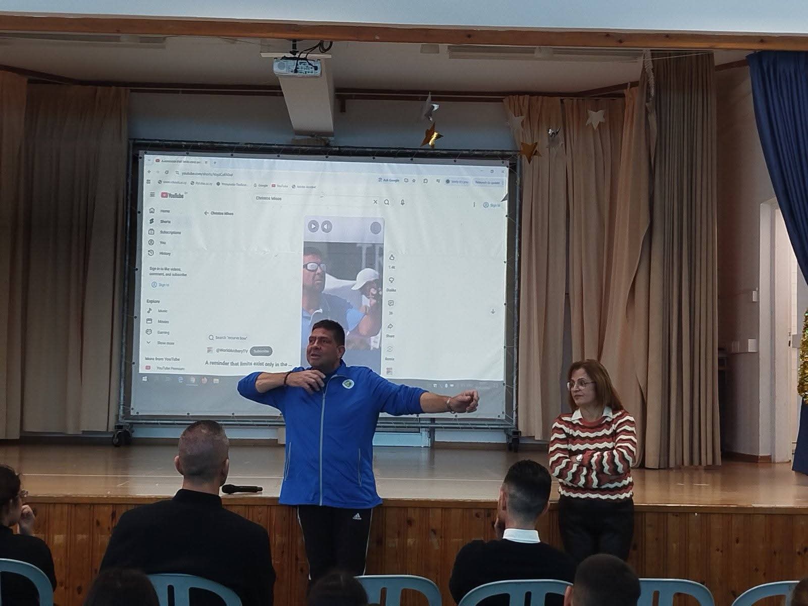 Μέσα από βίντεο που προβλήθηκαν και ιδιαίτερα μέσα από τον λόγο του, ανέδειξε τις αξίες του αθλητισμού, της ισότητας και της αποδοχής της διαφορετικότητας, απαντώντας με ειλικρίνεια και αμεσότητα στις ερωτήσεις των μαθητών. Η μαρτυρία του λειτούργησε ως πηγή έμπνευσης, ενθαρρύνοντας όλους να βλέπουμε τις δυσκολίες ως ευκαιρίες για υπέρβαση και εξέλιξη.