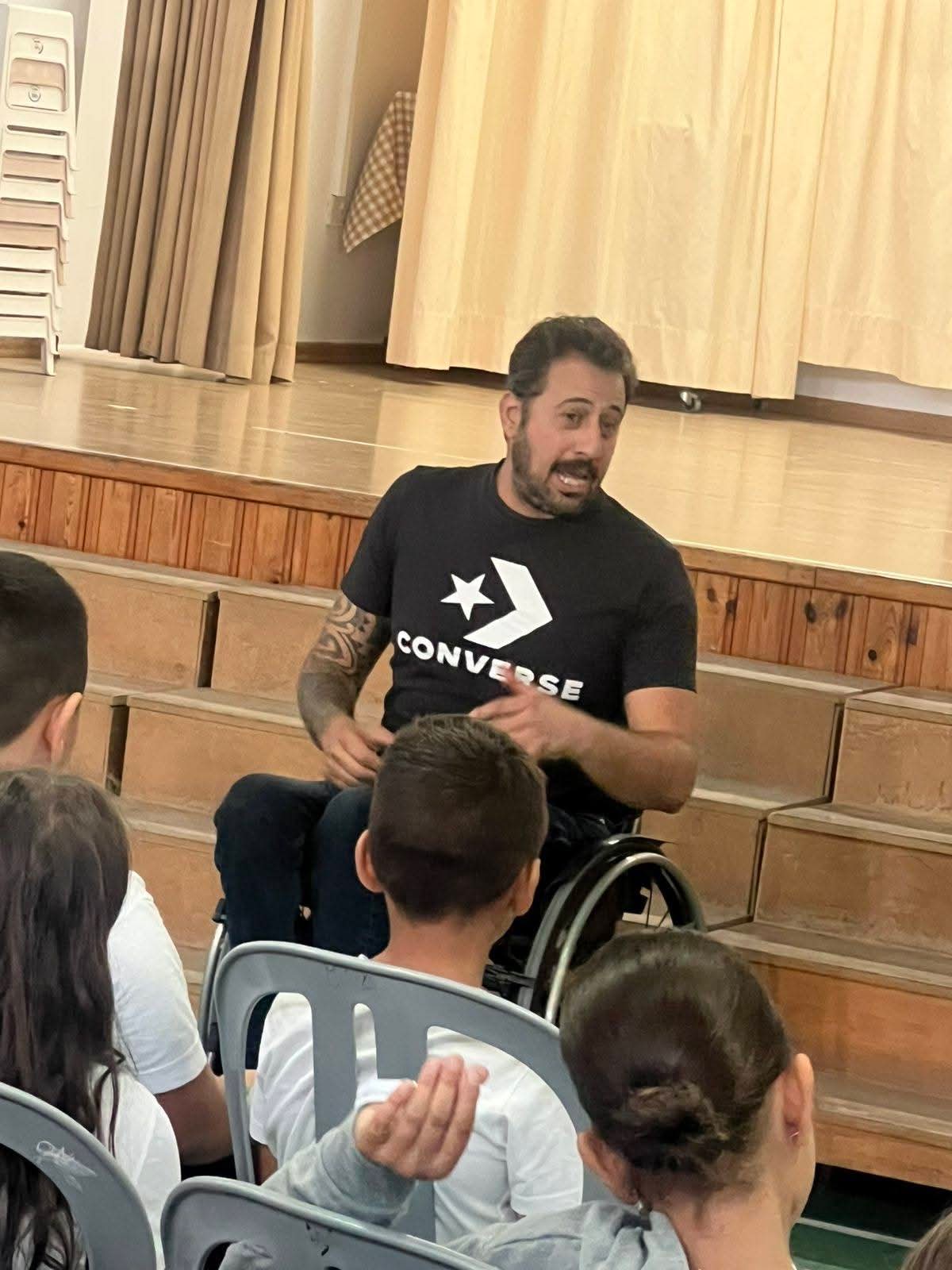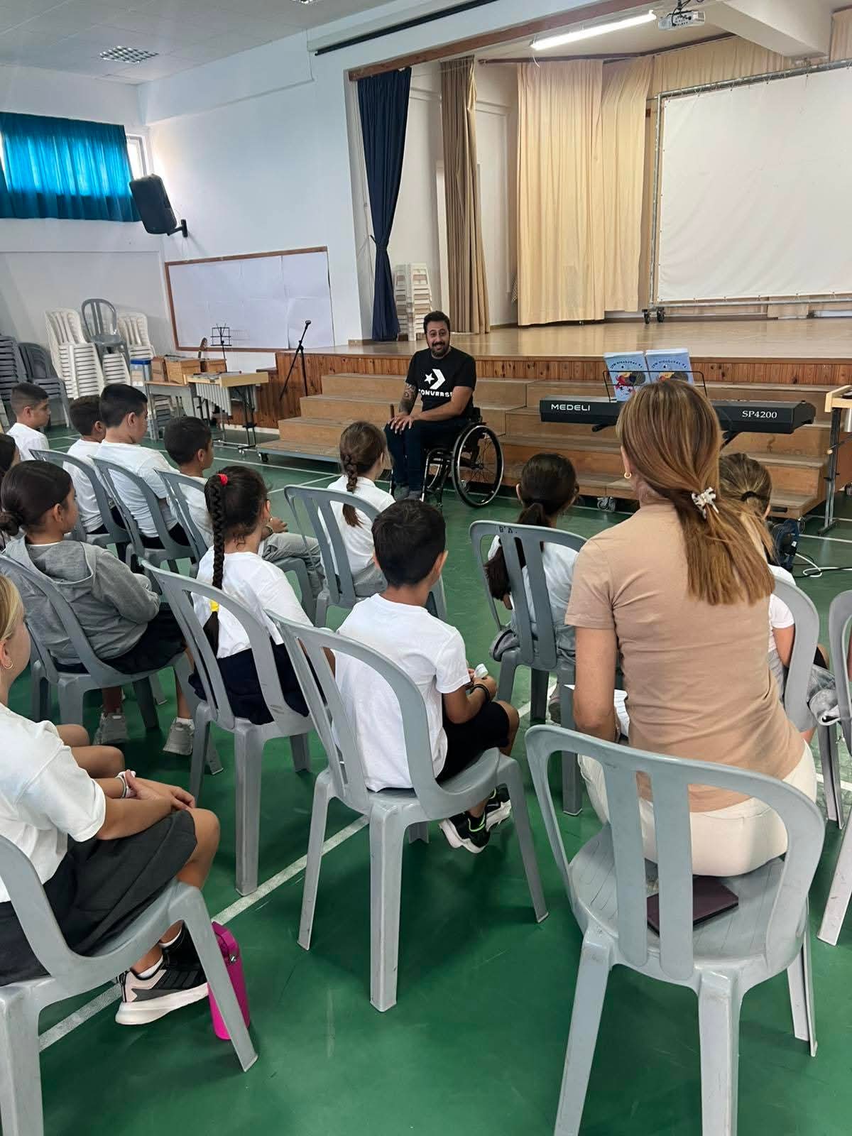 Ο κ. Χάρης μίλησε στα παιδιά για τις δυσκολίες που αντιμετώπισε μετά το ατύχημα, την καθημερινότητα του, αλλά και για την ανάγκη να αντιμετωπίζονται οι παραπληγικοί με σεβασμό, όχι μόνο στα λόγια, αλλά και στις πράξεις.