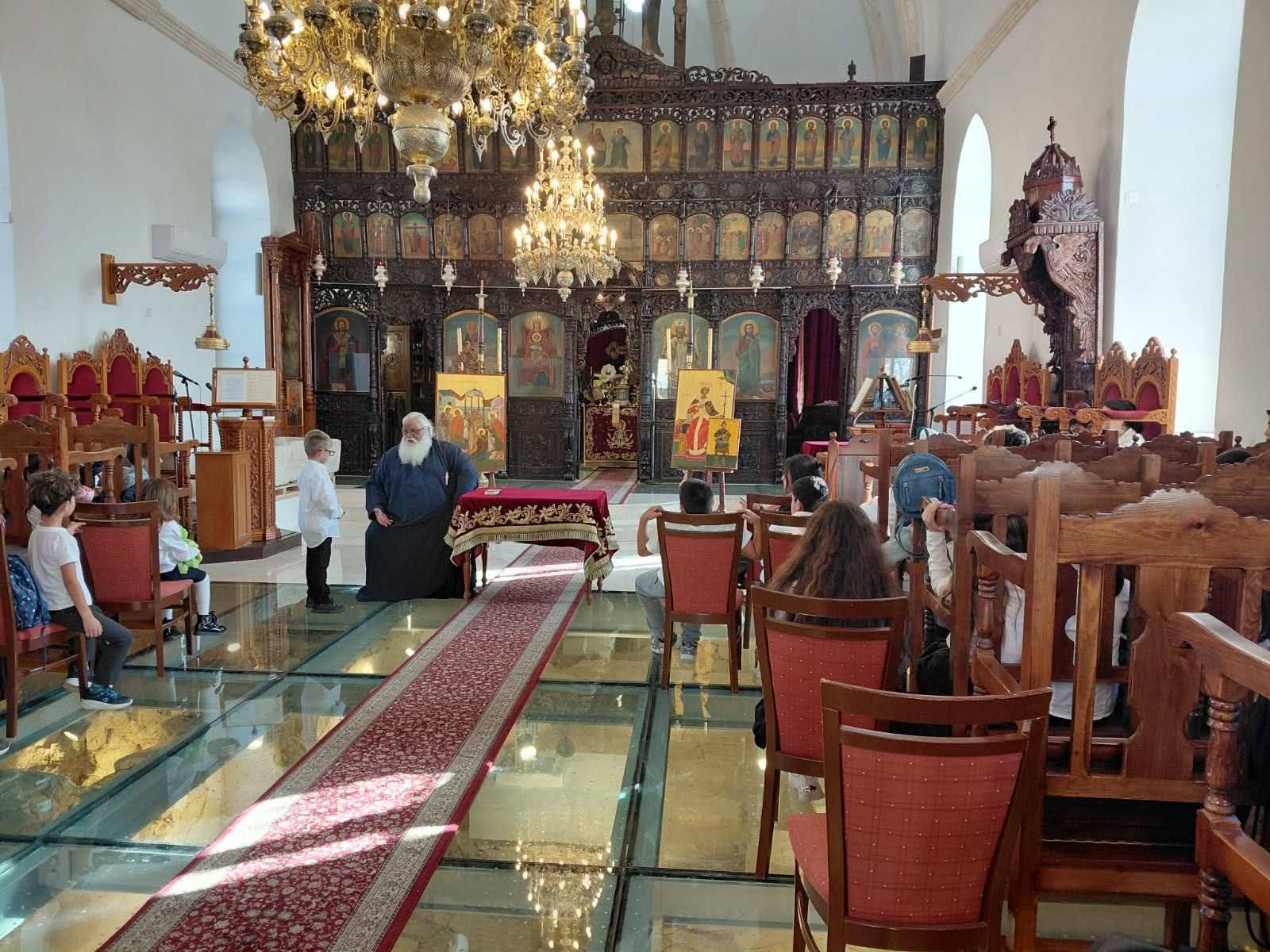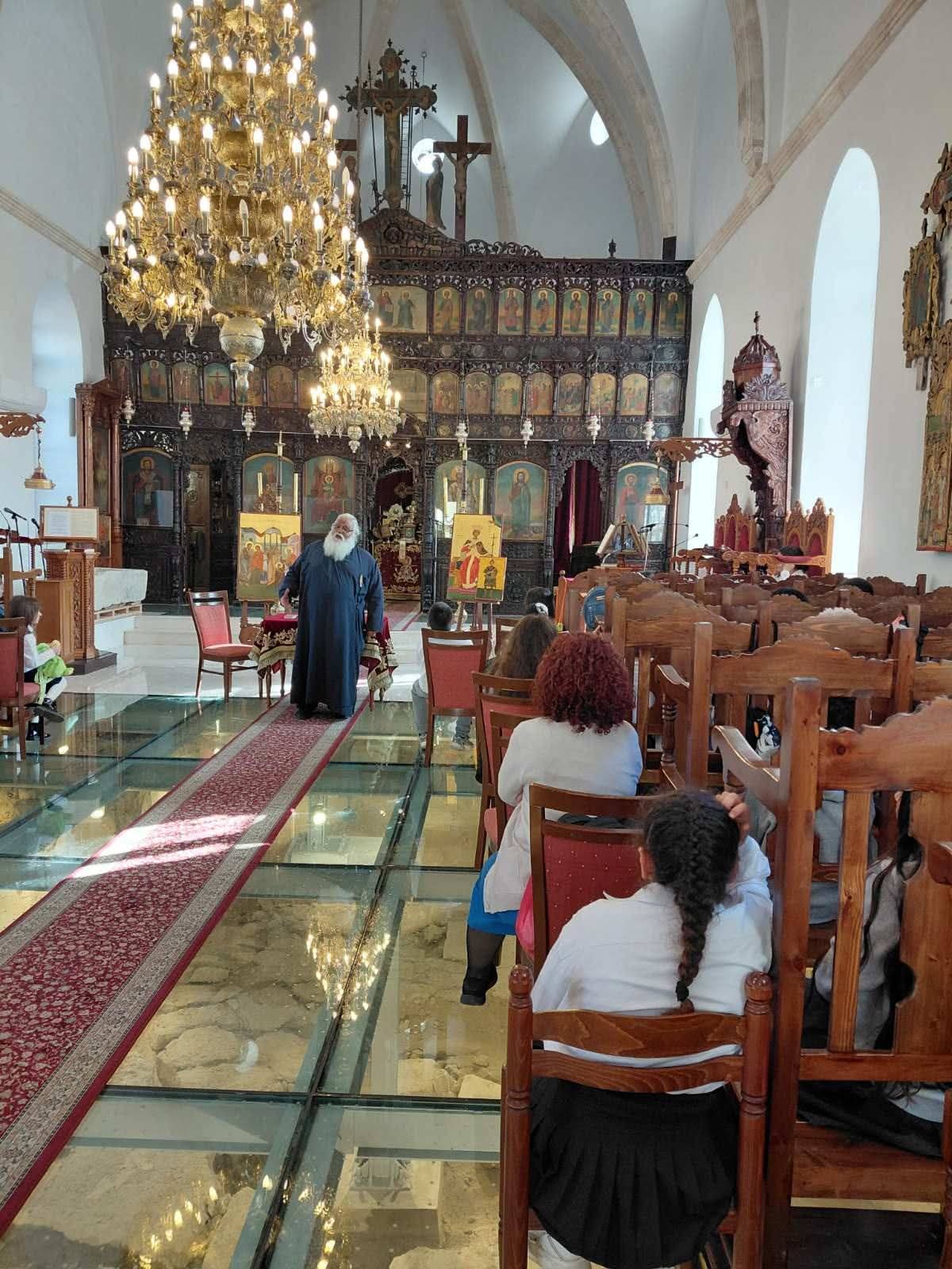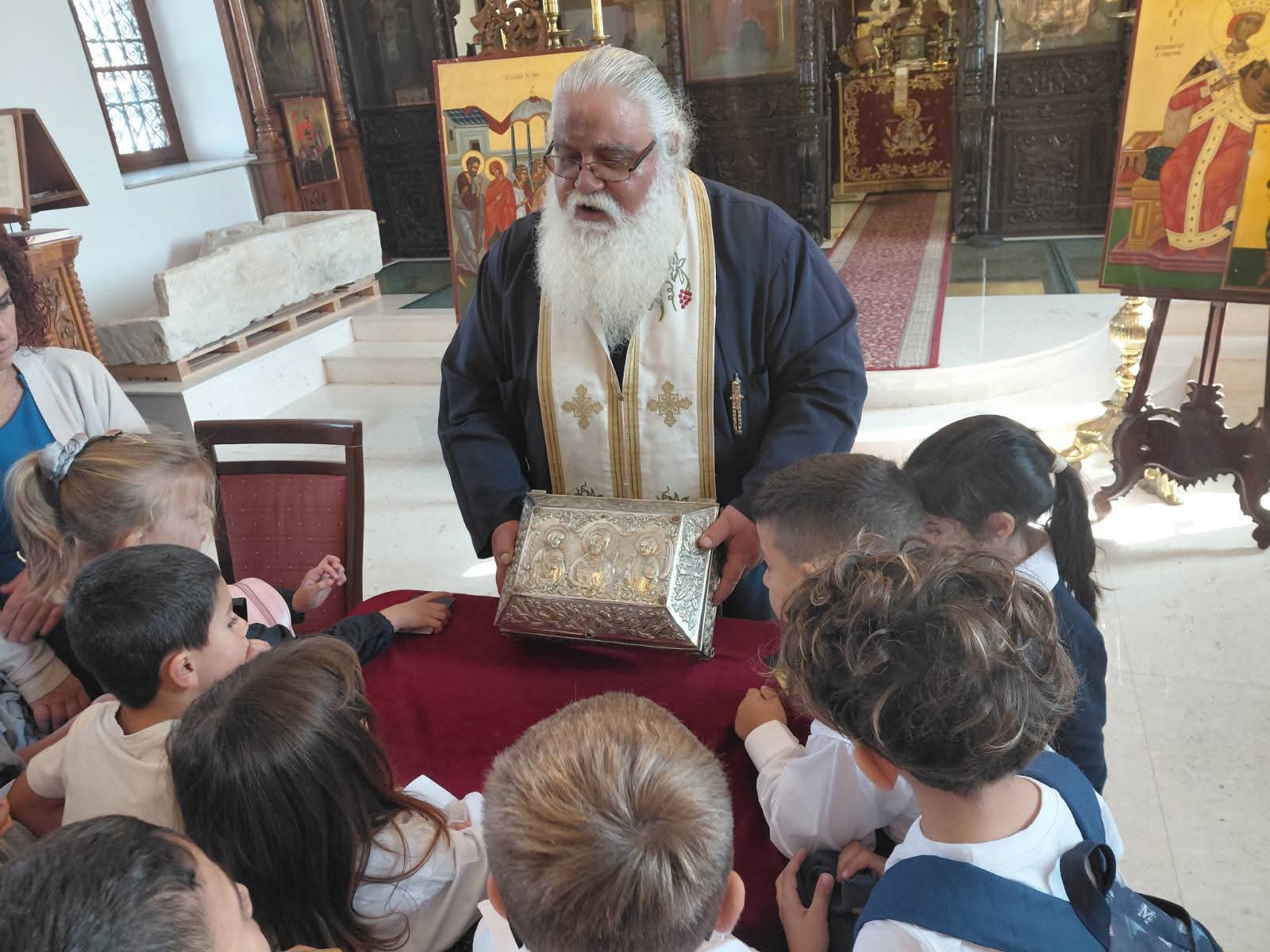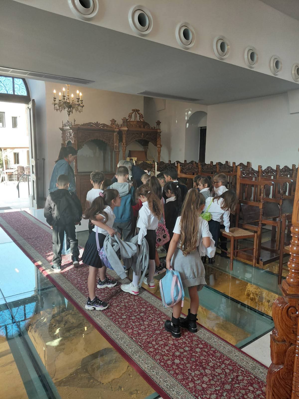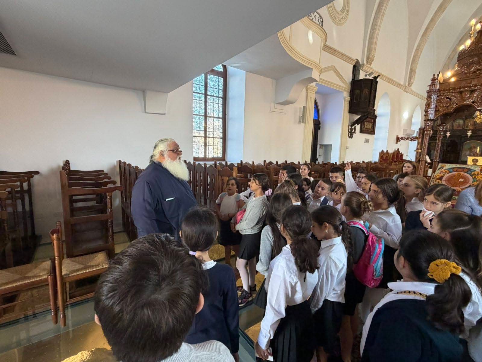 Τα παιδιά των Α, Ε και Στ τάξεων του σχολείου μας επισκέφτηκαν την εκκλησία της κοινότητας μας, που είναι αφιερωμένη στον Άγιο Κωνσταντίνο τον Αλαμάνο. Τα παιδιά. παρακολούθησαν τη θεία λειτουργία. Στη συνέχεια ο πάτερ Σέργιος τους ξενάγησε στον ναό.