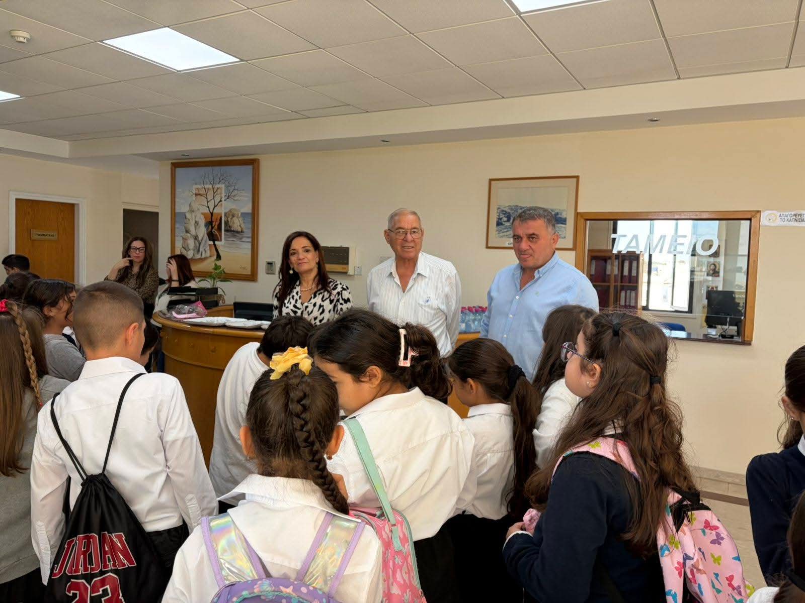 Στα πλαίσια του δεκαπενθημέρου "Γνωρίζω, Δεν ξεχνώ, Διεκδικώ" την Τρίτη 11 Νοεμβρίου τα παιδιά όλων των τάξεων του σχολείου μας επισκέφθηκαν το Πολιτιστικό Κέντρο Δήμου Αμμοχώστου, που βρίσκεται στη γραμμή αντιπαράθεσης, κοντά στο Οδόφραγμα Δερύνειας. Εκεί είχαν την ευκαιρία να ενημερωθούν για την κατεχόμενη πόλη της Αμμοχώστου, που παραμένει στα χέρια των Τούρκων 51 χρόνια μετά την τουρκική εισβολή του 1974. Ακόμη τους δόθηκε η ευκαιρία να αγναντέψουν από μακριά την αγαπημένη πόλη της Αμμοχώστου.