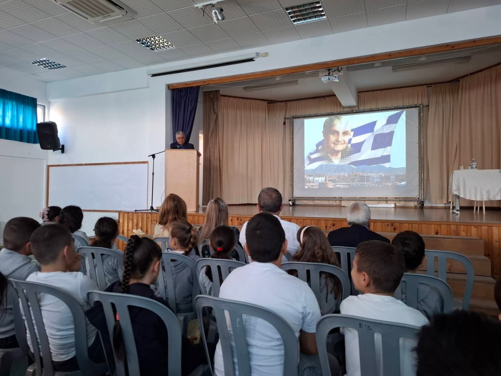 Την Πέμπτη 31 Οκτωβρίου είχαμε τη χαρά να φιλοξενήσουμε στο σχολείο μας την κυρία Κυριακή Τσαγκάρη Χατζηγεωργίου στα πλαίσια του στόχου "Δεν Ξεχνώ".