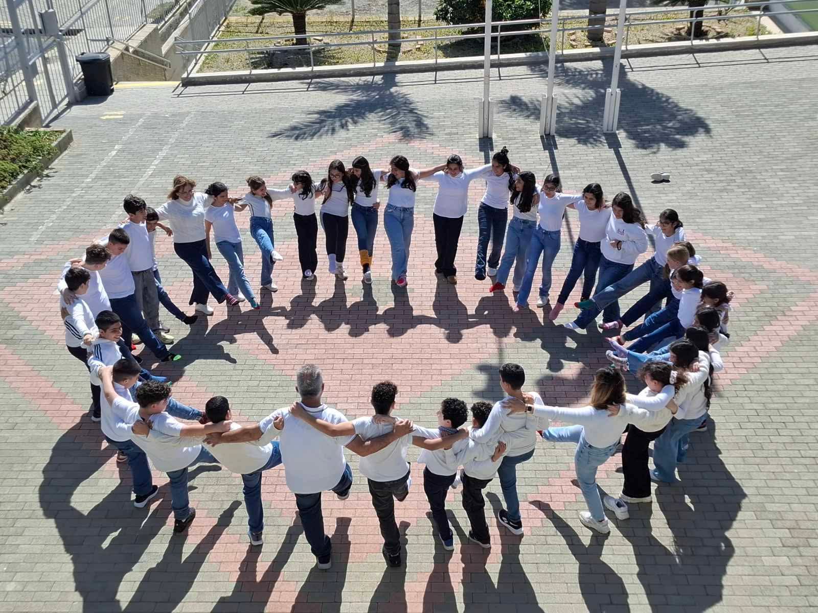 Οι μαθητές/ τριες του σχολείου μας φόρεσαν παντελόνια jeans, σύμβολο των γονιδίων (genes), και πολύχρωμες διαφορετικές κάλτσες και φωτογραφήθηκαν δίνοντας το μήνυμα ότι όλοι είμαστε ξεχωριστοί, μοναδικοί, αλλά πάντα αγαπημένοι και ενωμένοι!