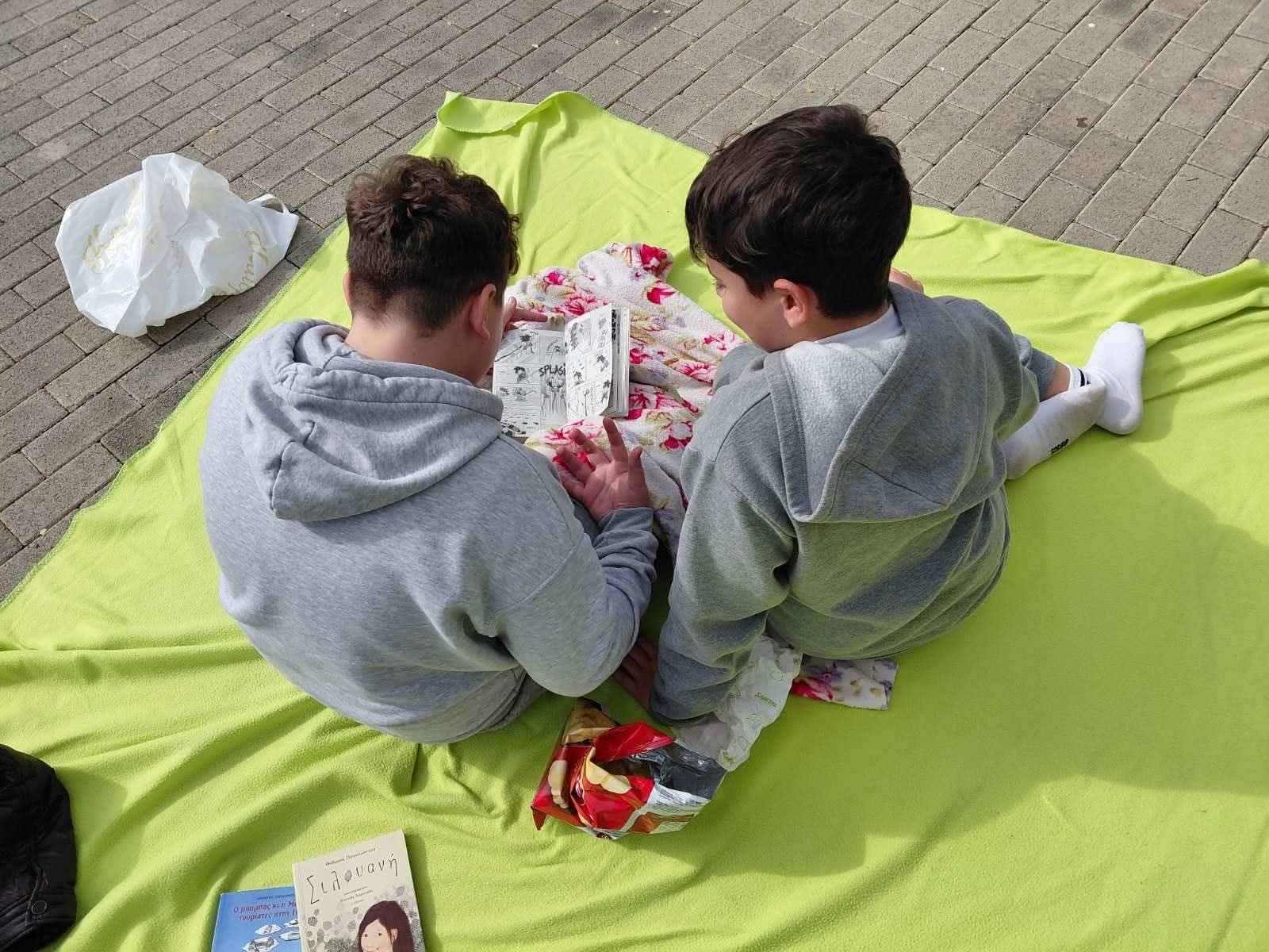 Ως επιστέγασμα των δράσεων του δεκαπενθήμερου φιλαναγνωσίας, που οργάνωσε το σχολείο μας, για να τιμήσει τη Μέρα των Γραμμάτων, διοργάνωσαμε πικ νικ διαβάσματος, στην αυλή του σχολείου. Στόχος της δράσης ήταν να δοθεί η ευκαιρία στα παιδιά να ανακαλύψουν τον μαγικό κόσμο των βιβλίων και να αγαπήσουν το διάβασμα.