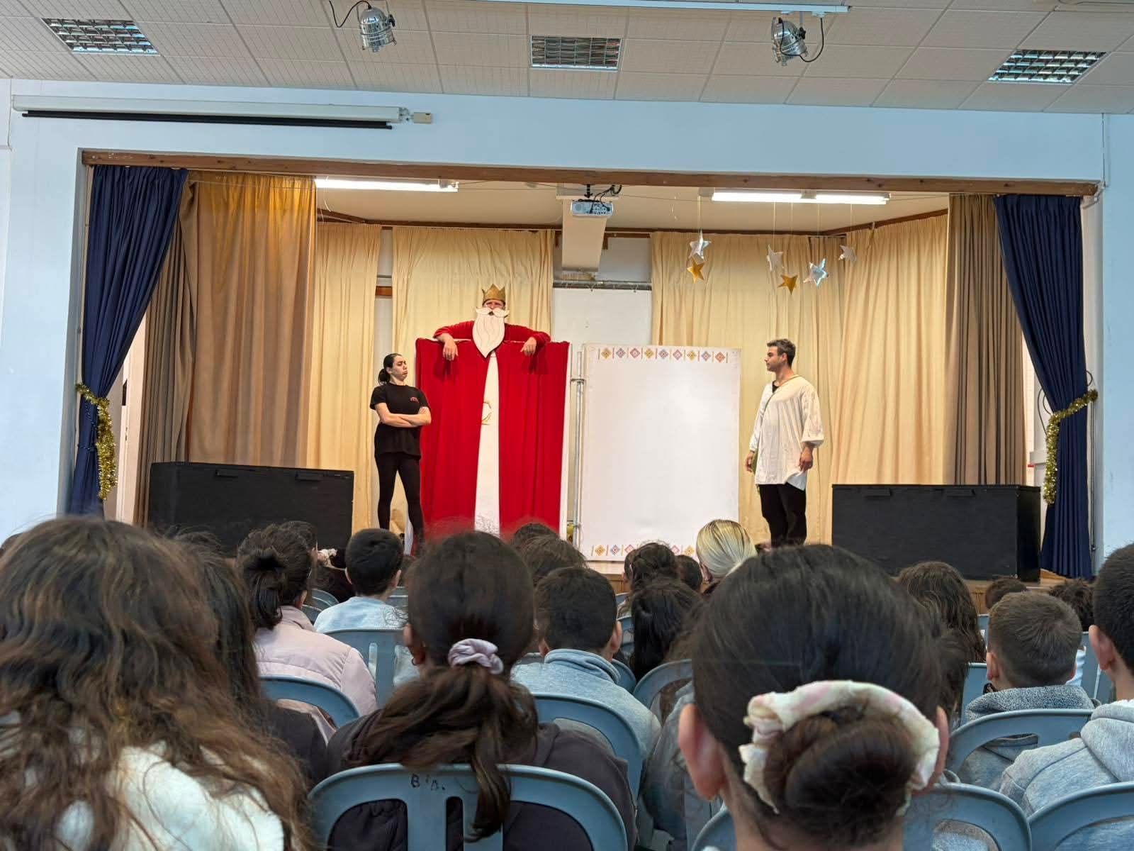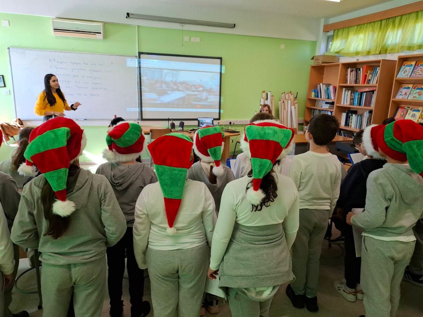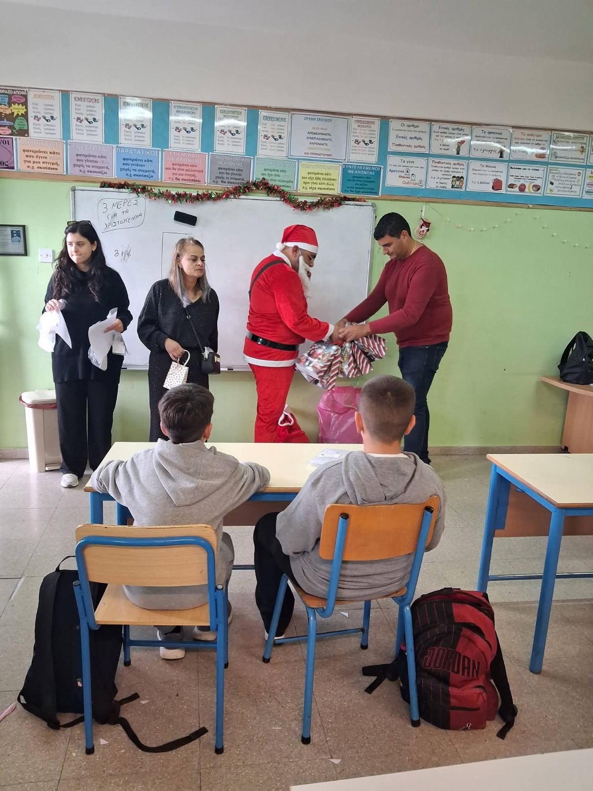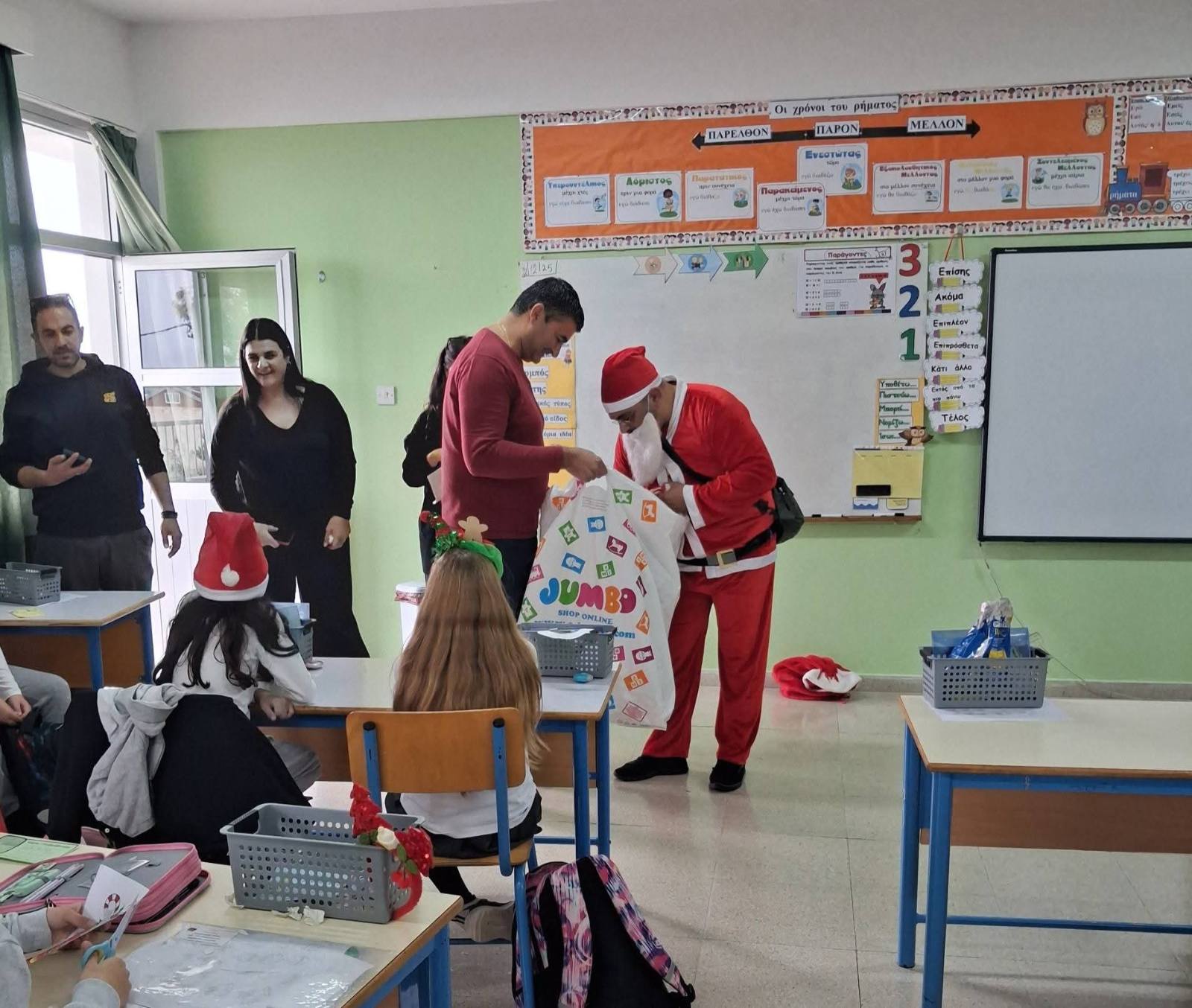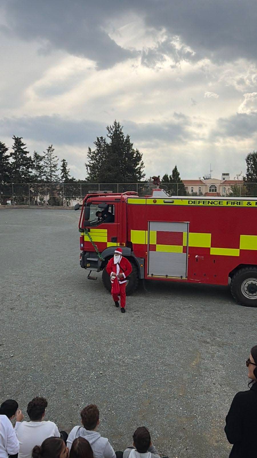 Ο Άγιος Βασίλης με τα ξωτικά του/ μέλη του Συνδέσμου Γονέων, έκανε ξαφνικά την εμφάνισή του στο σχολείο μας. Επιβαίνοντας σε πυροσβεστικό όχημα, συνοδευόμενος από περιπολικό της αστυνομίας των Βρετανικών Βάσεων Δεκέλειας, μπήκε στο γήπεδο προκαλώντας τον ενθουσιασμό και τη χαρά σε όλα τα παιδιά του σχολείου μας και του γειτονικού νηπιαγωγείου.